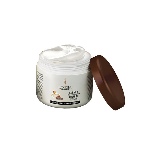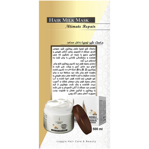 ماسک شیر مو لوجیا حاوی پروتئین شیر، سبوس گندم و آرگان طبیعی و کراتین مایع با رایحه‌ای دلنشین که حس طراوت و شادابی مو را به ارمغان می‌آورد و برای مو بسیار مغذی است. این ماسک پروتئین لازم برای مو را تامین کرده و سرشار از کلسیم و آهن است. این محصول غنی شده با ویتامین ب2 و ب1، تامین کننده رطوبت لازم برای رشد و حفاظت مو و همچنین نرم کننده قوی بوده و از گره خوردن مو جلوگیری می‌کند. از دیگر ویژگی‌های این ماسک می‌توان به سرشار بودن از آنتیاکسیدان و غنی شده با پروتئین با قابلیت جذب سریع و آسان اشاره کرد. این ماسک مو برای برای داخل حمام مناسب بوده و به صورت روزانه می‌توان از آن استفاده کرد. همچنین این ماسک حاوی روغن آرگان و پروتئین شیر و گندم و کراتین است که باعث نرمی و خوش حالت شدن موها می‌شود. این ماسک برای انواع موها به ویژه موهای خشک و آسیب‌دیده مناسب است.